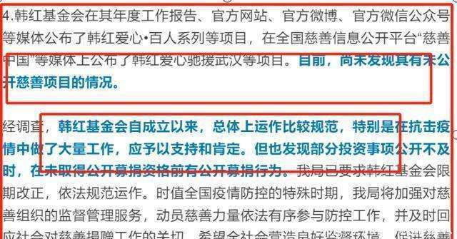 韩红当时可能也是心力交瘁了吧,没有马上解释。这一不解释,公众的质疑声就更大了。不过相关部门很快就出来调查了,结果显示韩红和她的基金会没啥大问题,工作透明,还在疫情期间做出了重要贡献,只是工作方式上有不足,让他们改正。但你说这事儿闹得,韩红的声誉受到了极大的影响,到现在也没人给她道歉。